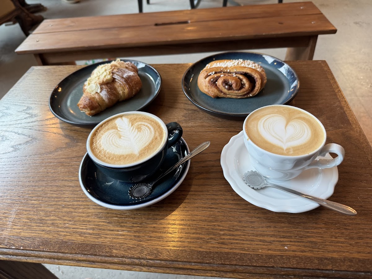 Fantastic almond croissants and quality cappuccino with oat milk. What a wonderful little place in a surprising location. Feels like entering a different world from the stuffy mall and metro station area to this cozy cafe. Inviting ambience with relaxing music, comfortable lighting and friendly service. Only had a chance to take out this time, but would definitely love to come back and sit down to enjoy.